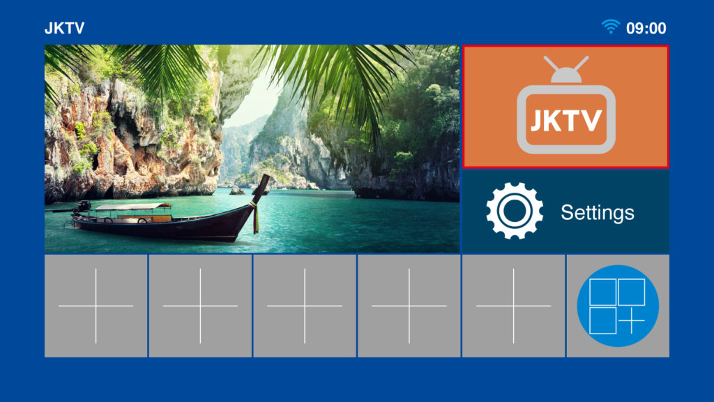 次に機器のリモコンを操作し、十字キーで右上の「JKTV」を選択し(赤枠が動きます)、「OK」ボタンを押します。